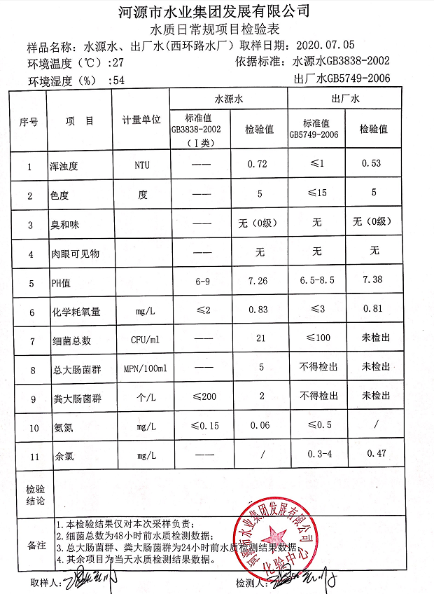 2020年7月5日水質(zhì)檢驗(yàn)報(bào)告