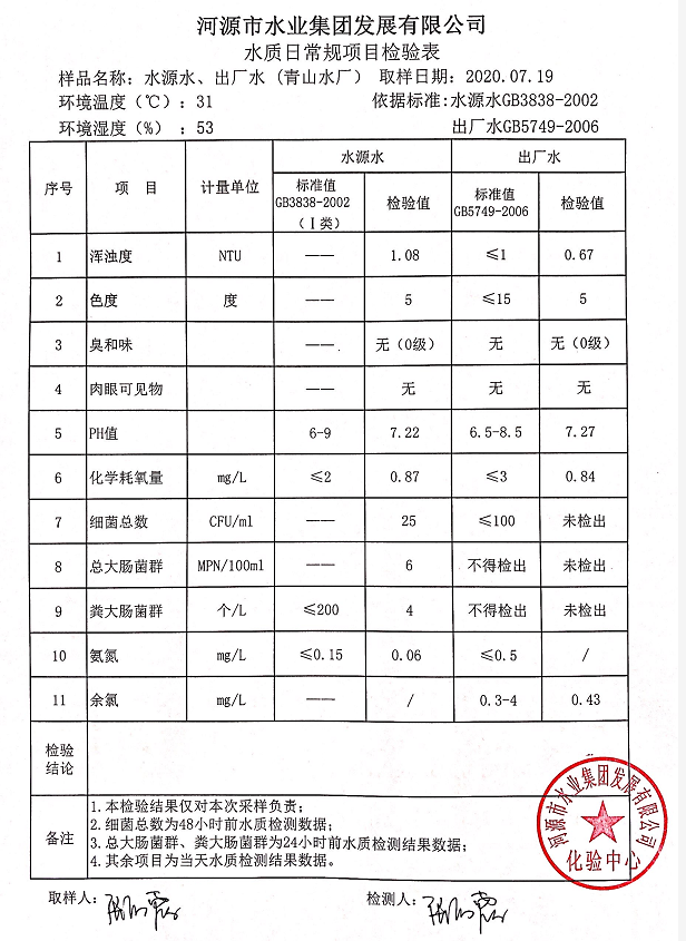 2020年7月19日水質(zhì)檢驗(yàn)報(bào)告