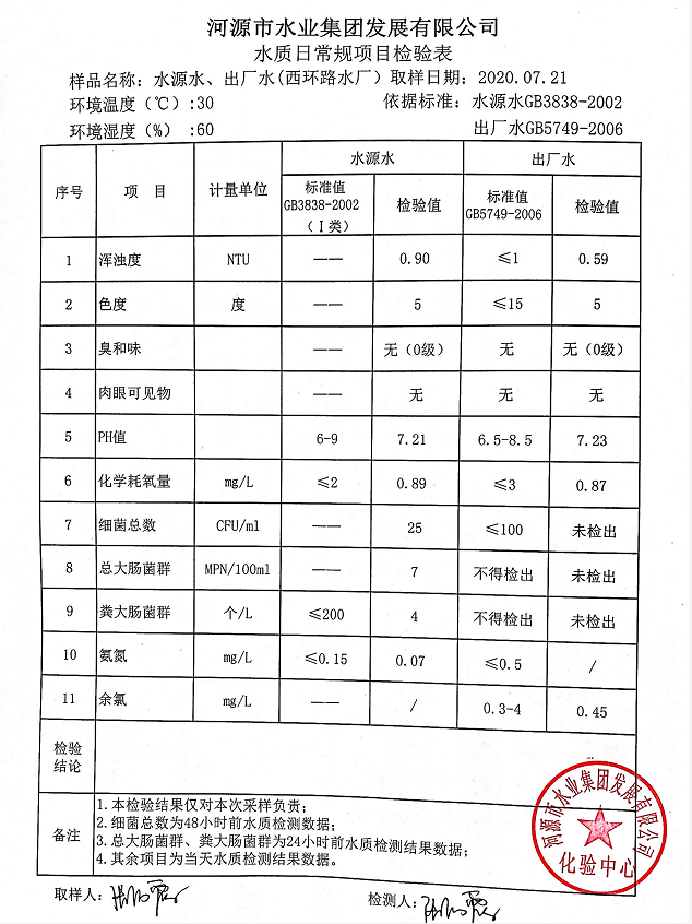 2020年7月21日水質檢驗報告