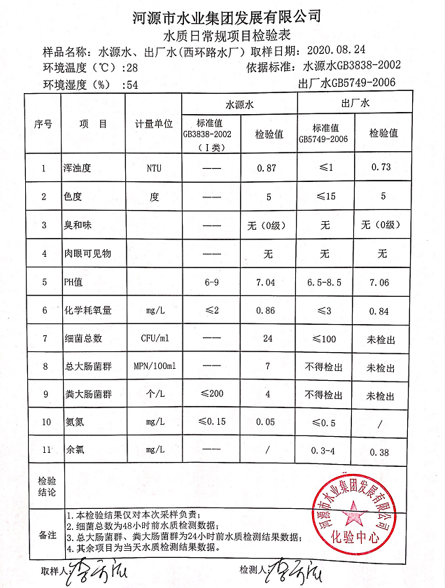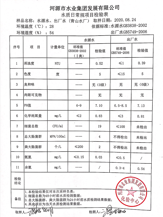 2020年8月24日水質(zhì)檢驗(yàn)報(bào)告