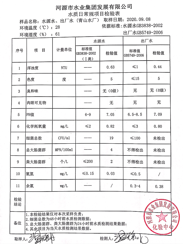 2020年9月8日水質(zhì)檢驗(yàn)報(bào)告