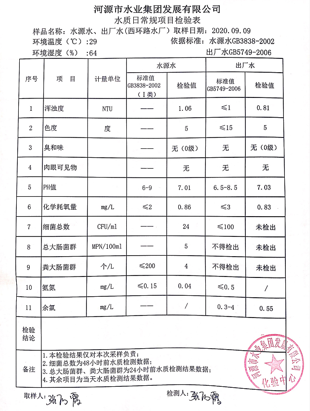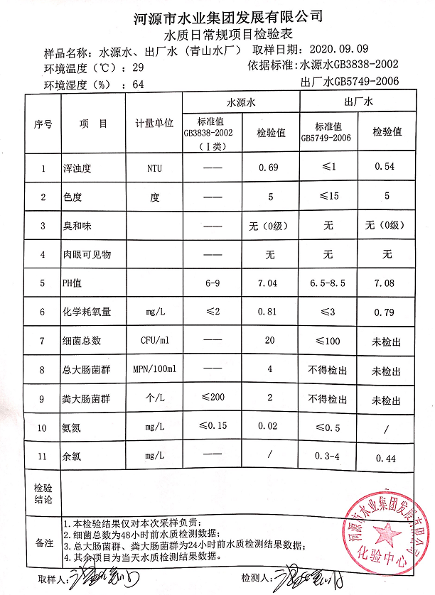 2020年9月9日水質(zhì)檢驗(yàn)報(bào)告