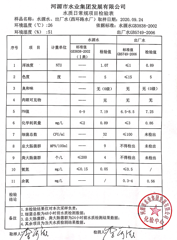 2020年9月24日水質(zhì)檢驗(yàn)報(bào)告