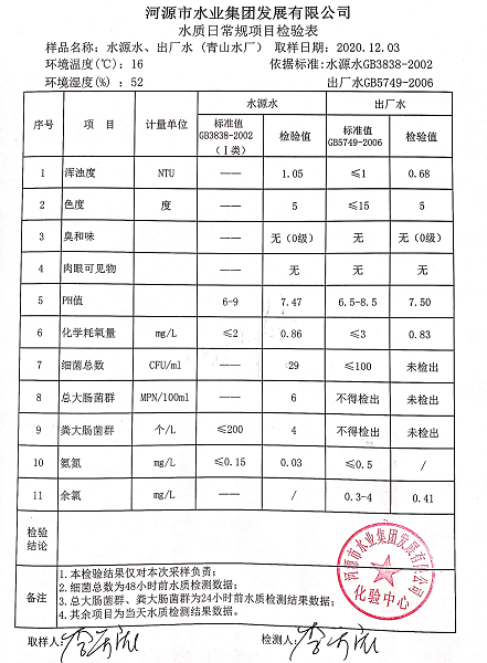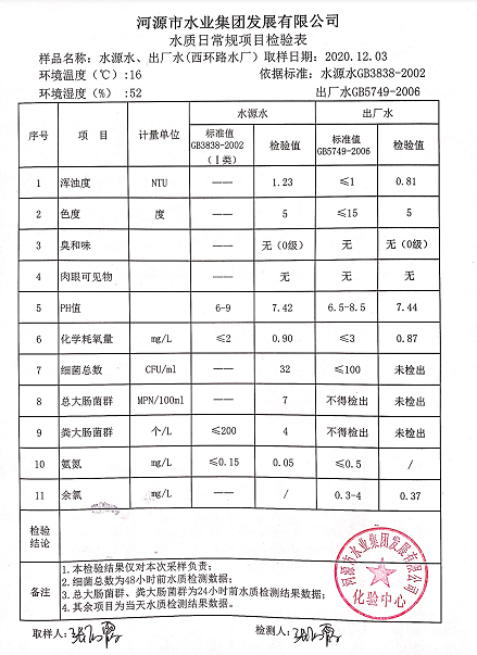 2020年12月3日水質(zhì)檢驗報告