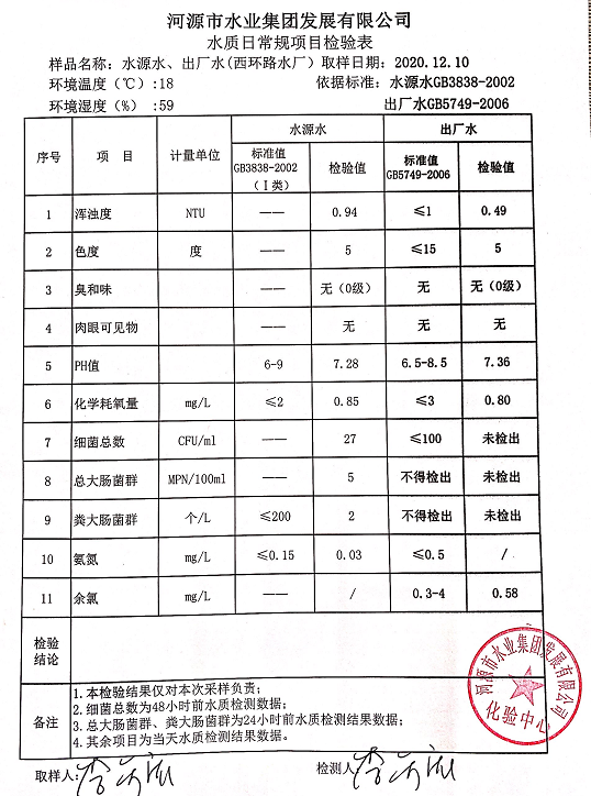 2020年12月10日水質(zhì)檢驗(yàn)報告