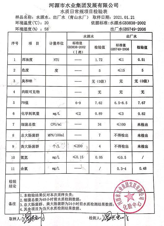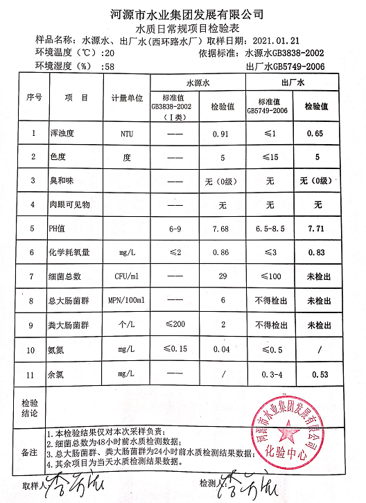 2021年1月21日水質(zhì)檢驗報告