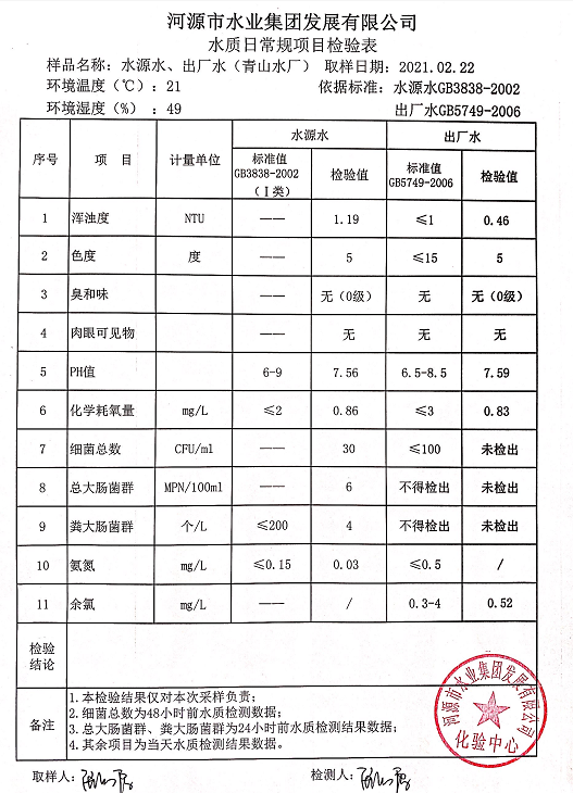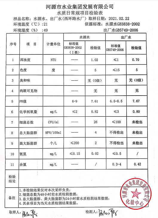 2021年2月22日水質檢驗報告