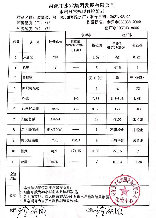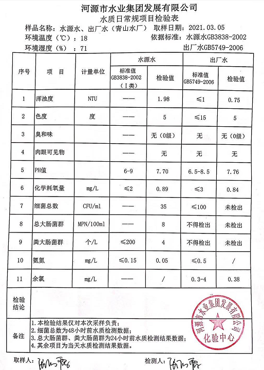 2021年3月5日水質(zhì)檢驗(yàn)報(bào)告