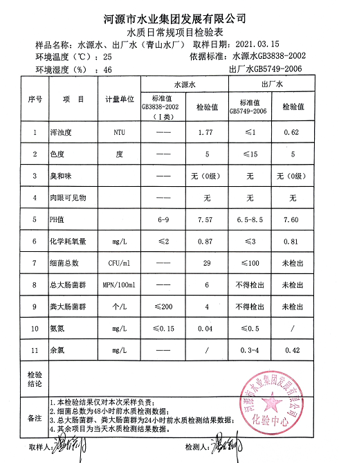 2021年3月15日水質(zhì)檢驗(yàn)報(bào)告