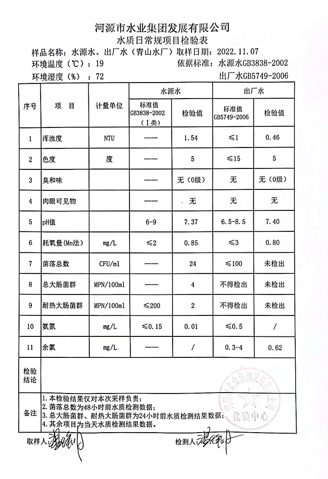 2022年11月7日水質(zhì)檢驗(yàn)報(bào)告