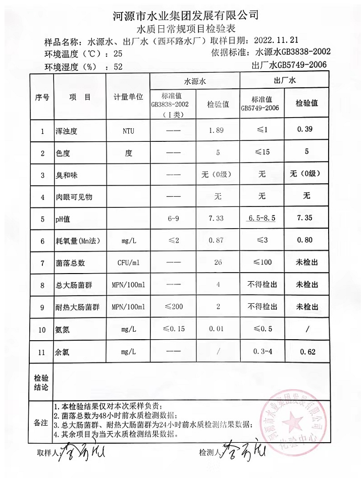 2022年11月21日水質(zhì)檢驗(yàn)報(bào)告