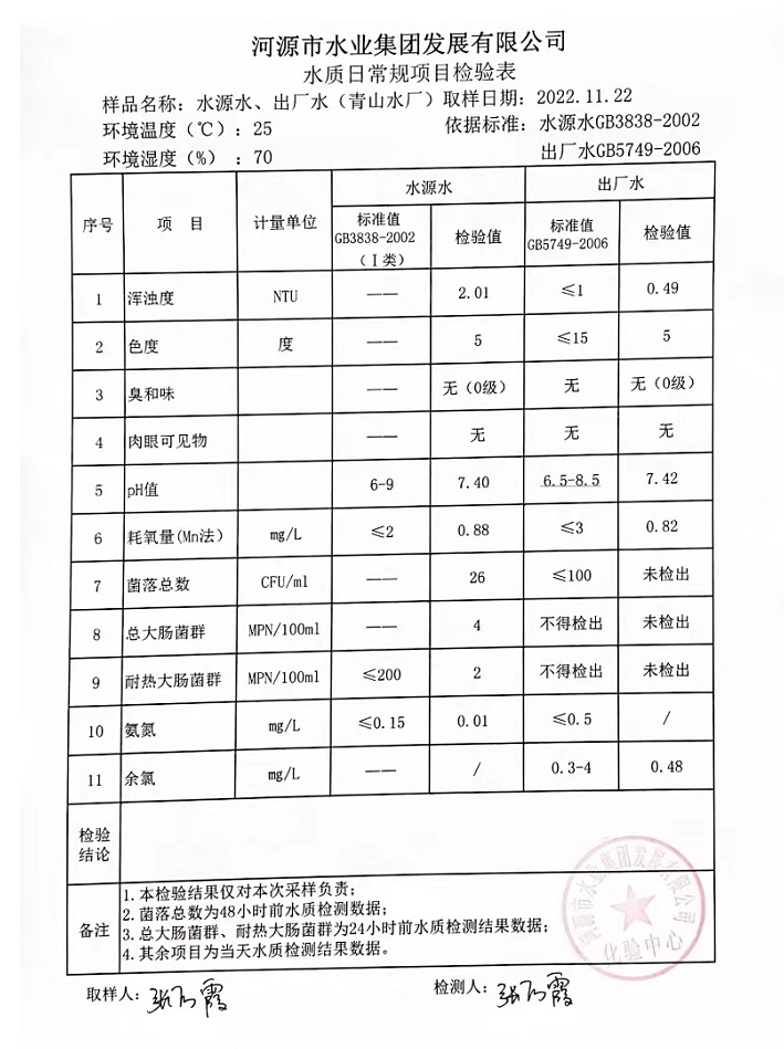 2022年11月22日水質(zhì)檢驗報告
