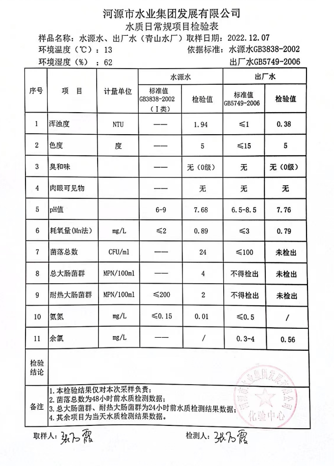 2022年12月7日水質(zhì)檢測報(bào)告