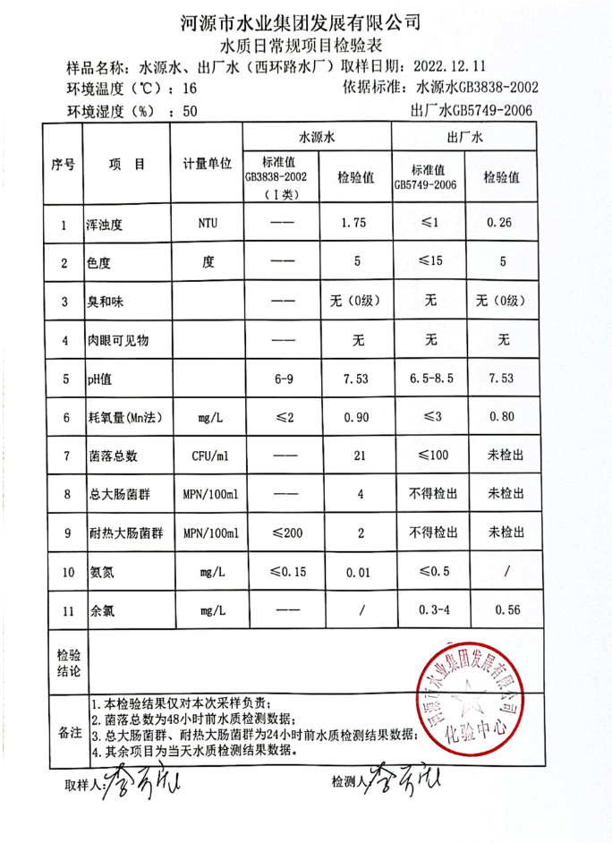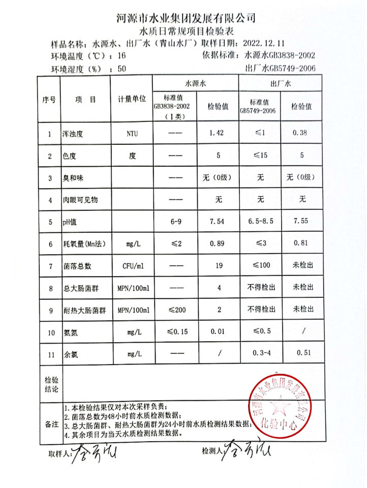 2022年12月11日水質(zhì)檢驗報告