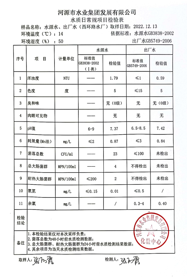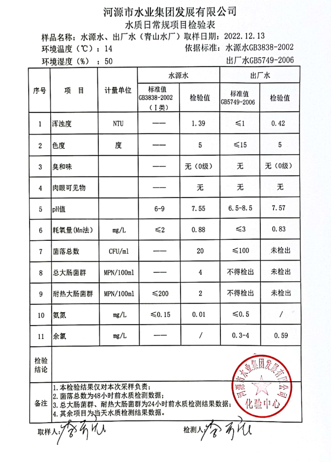 2022年12月13日水質(zhì)檢驗報告