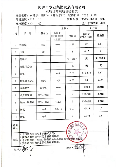 2022年12月22日水質(zhì)檢驗報告