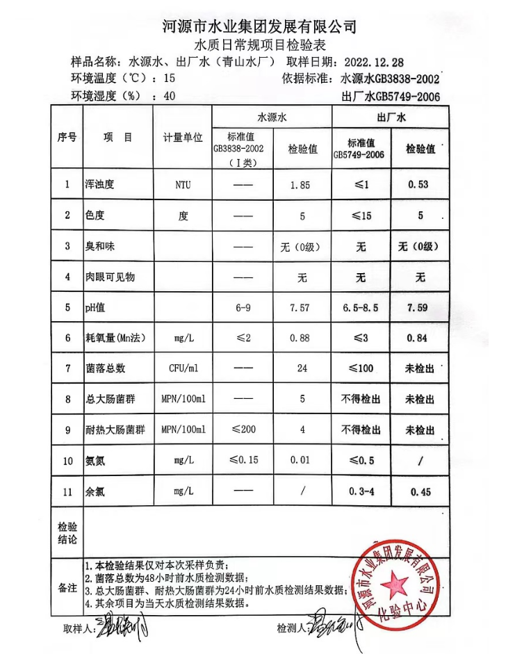 2022年12月28日水質(zhì)檢驗(yàn)報告