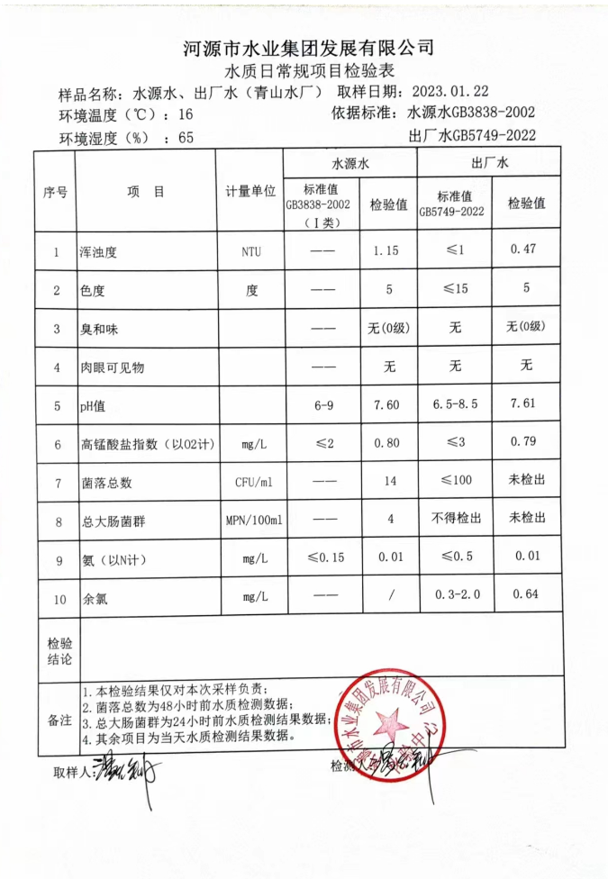 2023年1月22日水質檢驗報告
