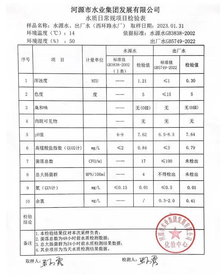 2023年1月31日水質(zhì)檢驗報告
