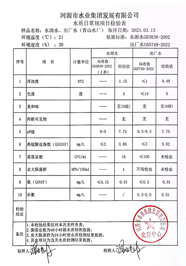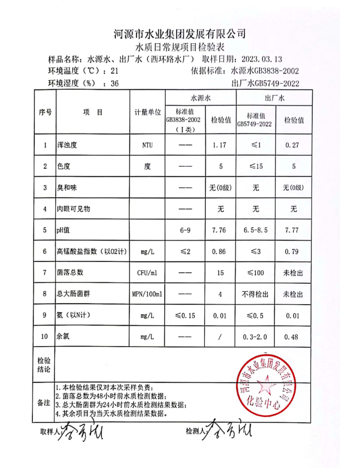 2023年3月13日水質檢驗報告