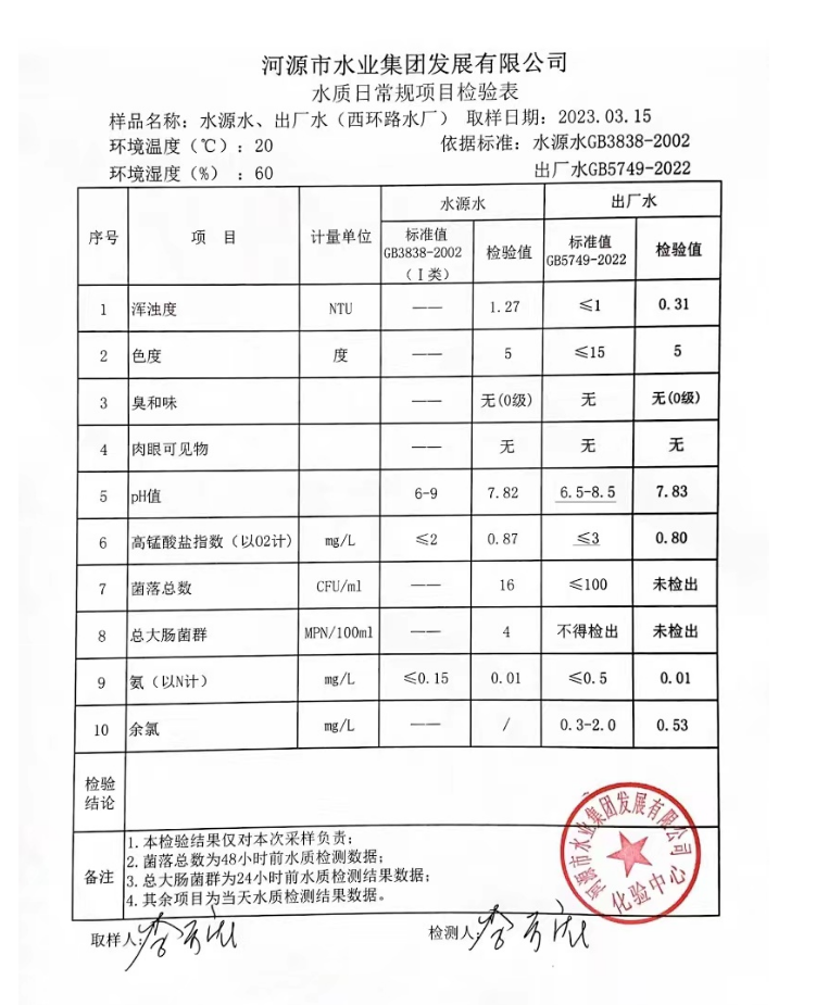 2023年3月15日水質(zhì)檢驗(yàn)報(bào)告