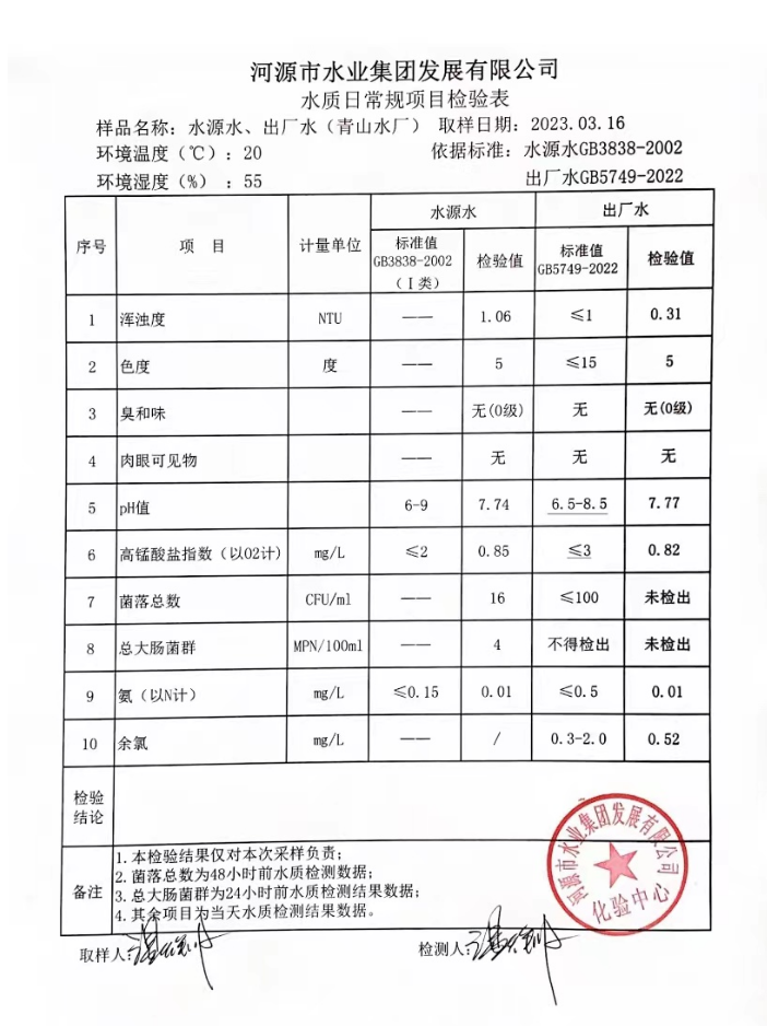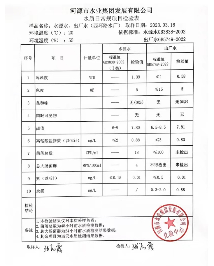 2023年3月16日水質檢驗報告