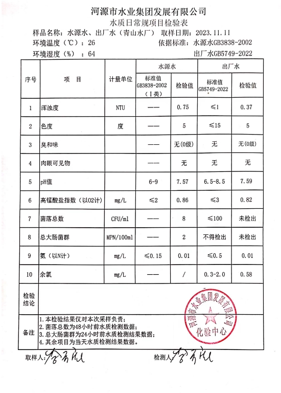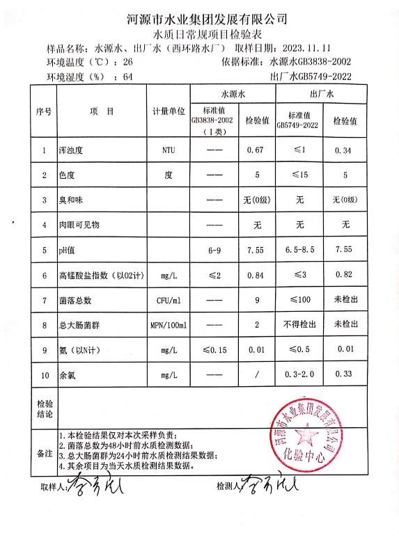 2023年11月11日水質(zhì)檢驗(yàn)報(bào)告 ???