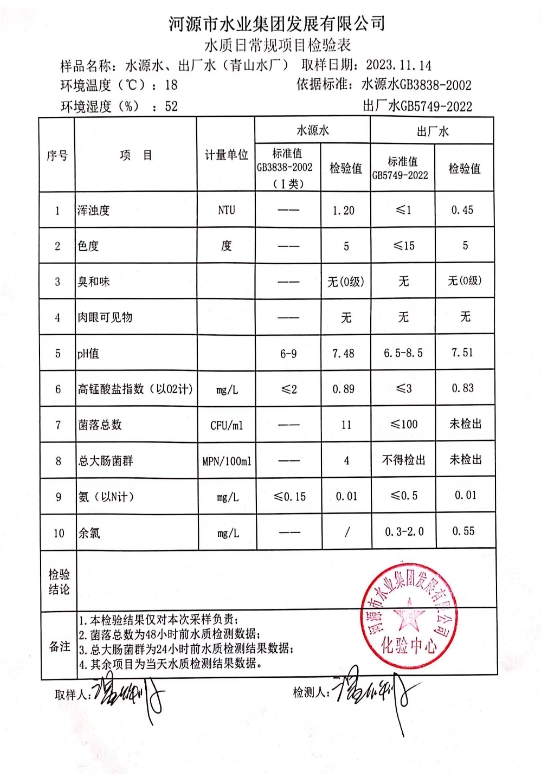 2023年11月14日水質(zhì)檢驗(yàn)報(bào)告 ???