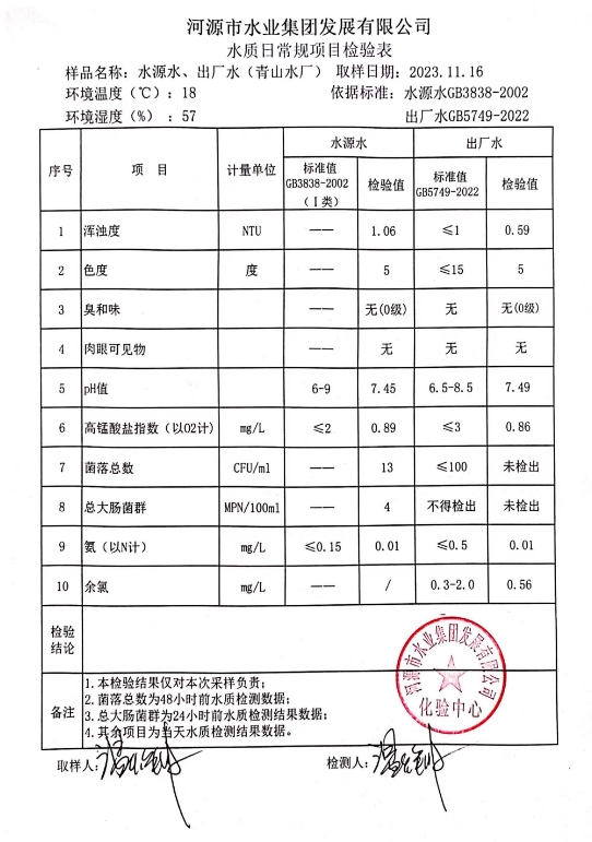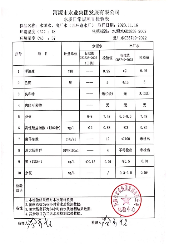 2023年11月16日水質(zhì)檢驗(yàn)報(bào)告 ???