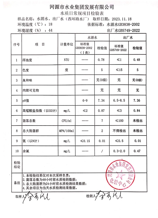 2023年11月18日水質(zhì)檢驗(yàn)報(bào)告 ???