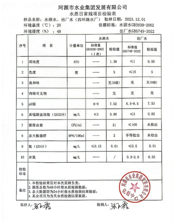 2023年12月1日水質(zhì)檢驗(yàn)報(bào)告 ???