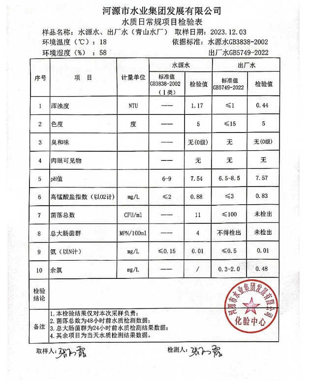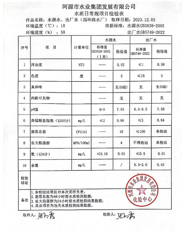2023年12月3日水質(zhì)檢驗報告 ???