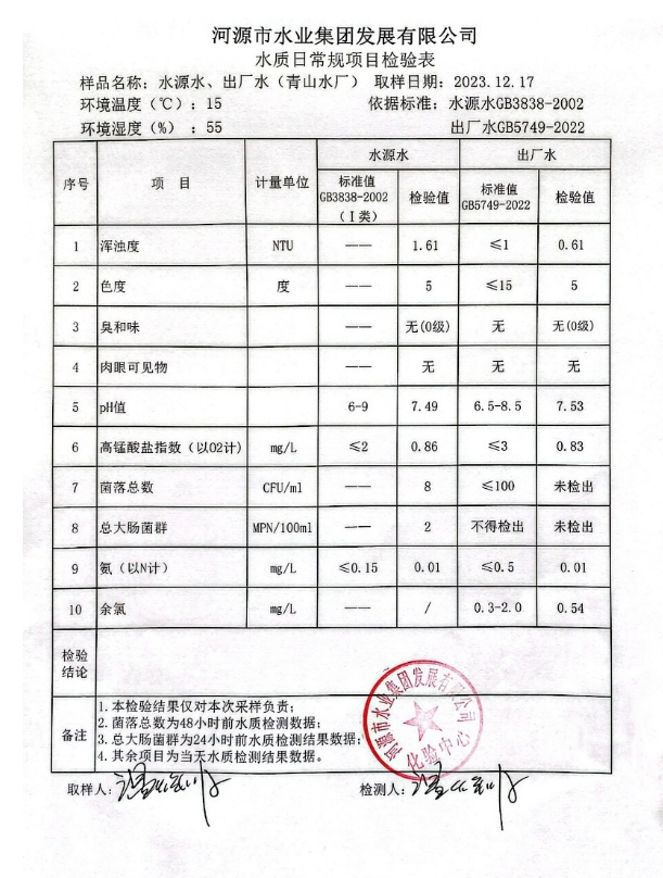 2023年12月17日水質(zhì)檢驗(yàn)報(bào)告 ???