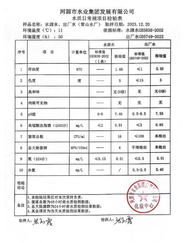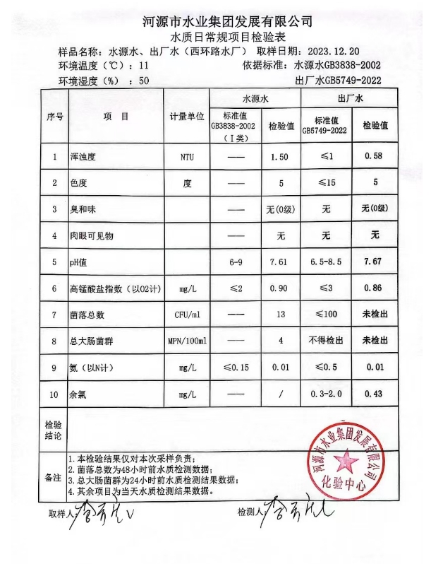 2023年12月20日水質(zhì)檢驗報告 ???