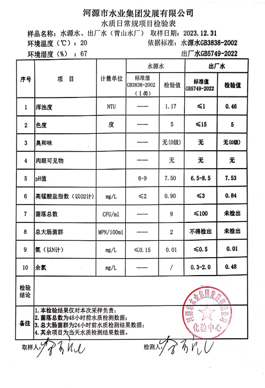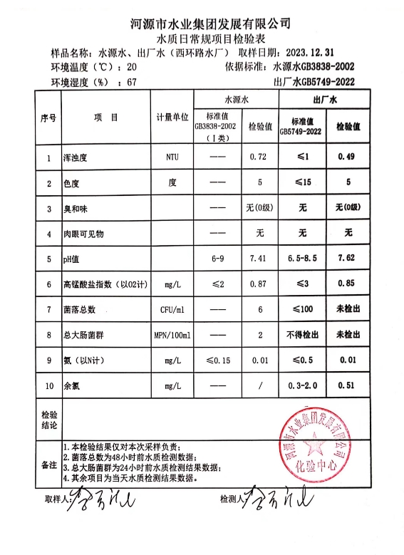 2023年12月31日水質(zhì)檢驗(yàn)報(bào)告 ???