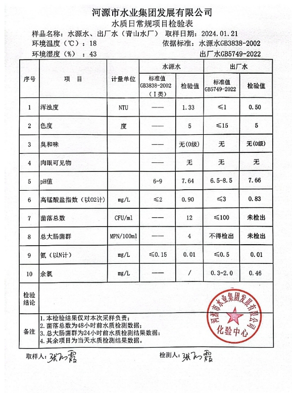 2024年1月21日水質(zhì)檢驗(yàn)報(bào)告 ???