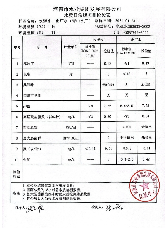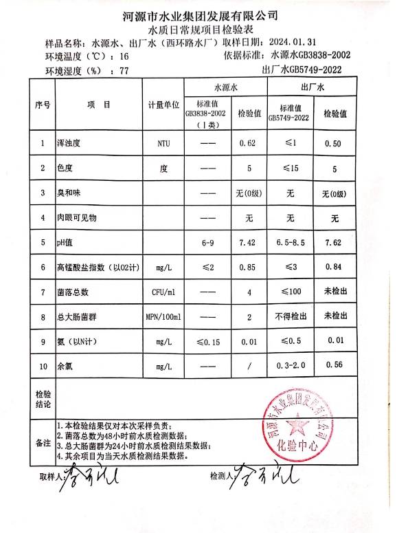 2024年1月31日水質(zhì)檢驗(yàn)報告 ???