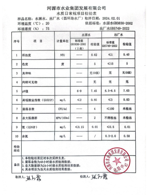 2024年2月1日水質(zhì)檢驗(yàn)報(bào)告 ???