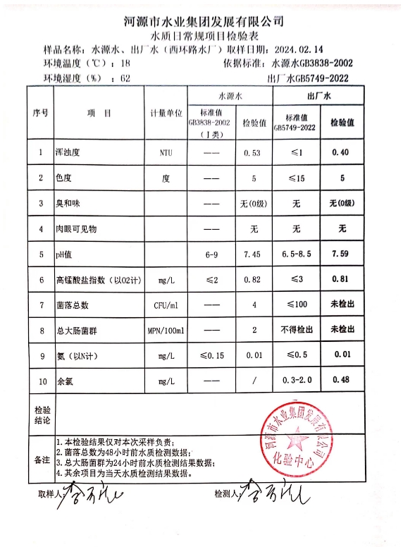 2024年2月14日水質(zhì)檢驗報告 ???