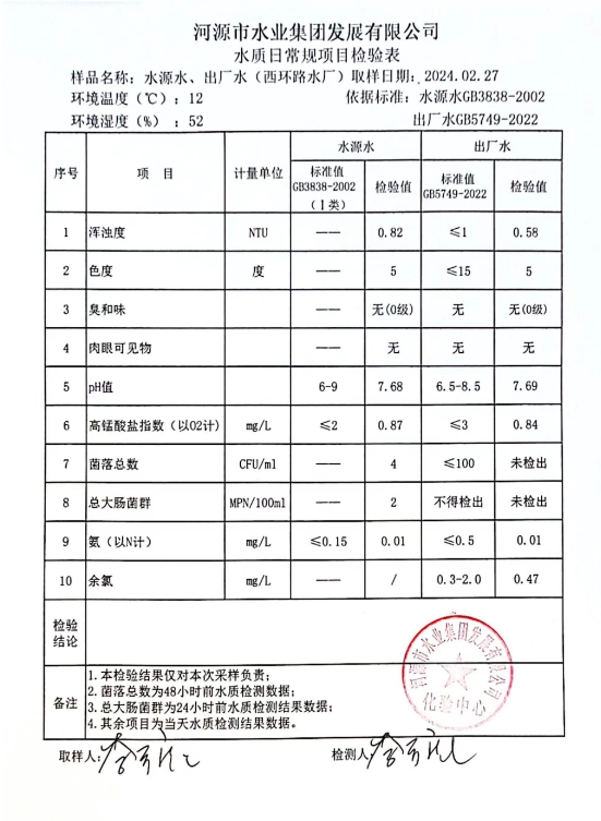 2024年2月27日水質(zhì)檢驗(yàn)報(bào)告 ???
