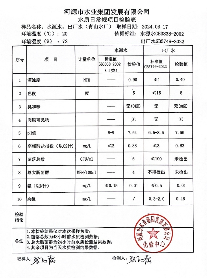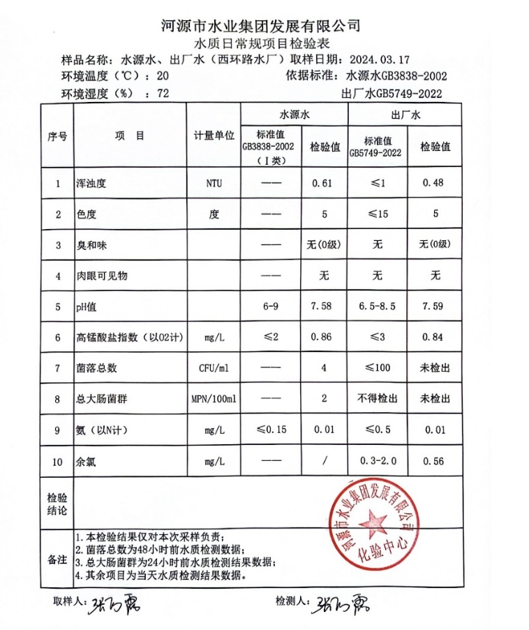 2024年3月17日水質(zhì)檢驗報告