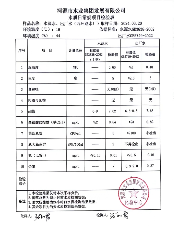 2024年3月20日水質(zhì)檢驗(yàn)報(bào)告