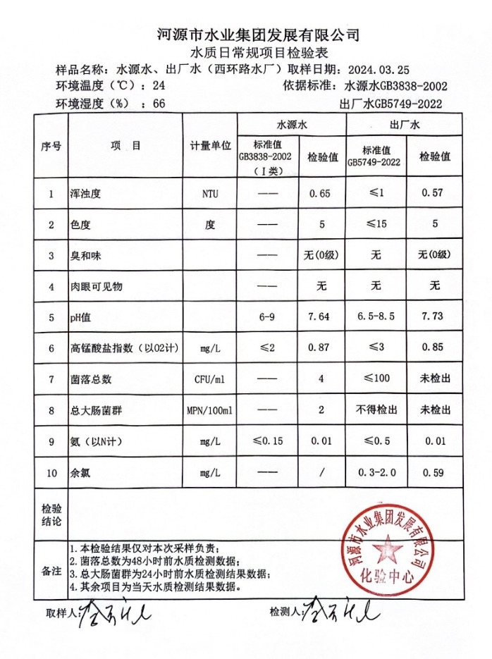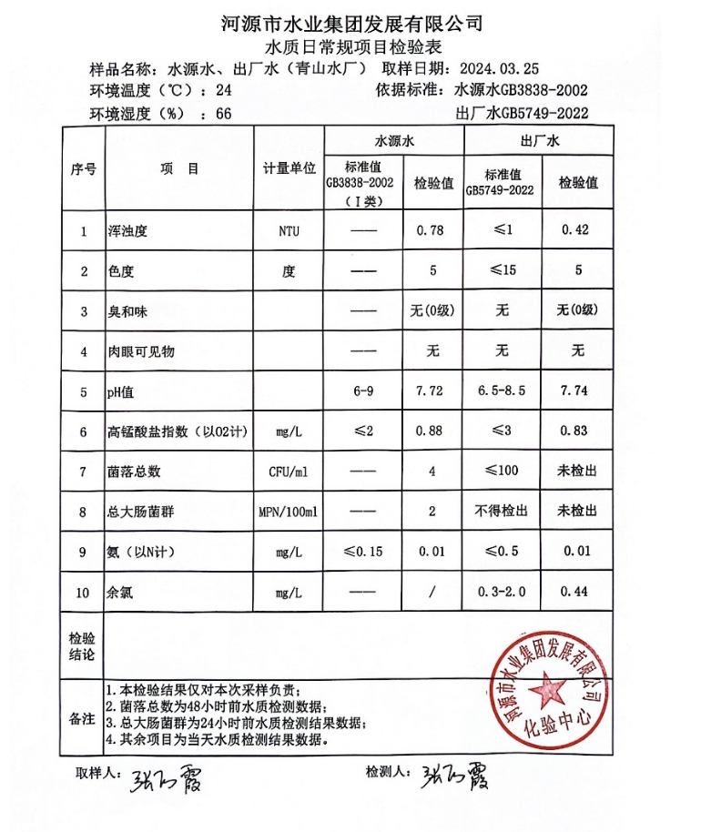 2024年3月25日水質(zhì)檢驗(yàn)報(bào)告