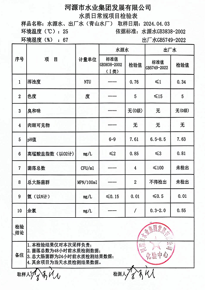 2024年4月3日水質(zhì)檢驗(yàn)報(bào)告
