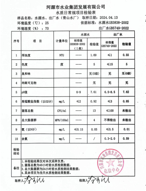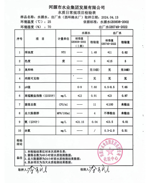 2024年4月13日水質(zhì)檢驗(yàn)報(bào)告
