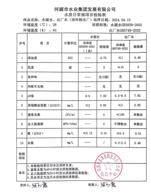 2024年4月15日水質(zhì)檢驗報告