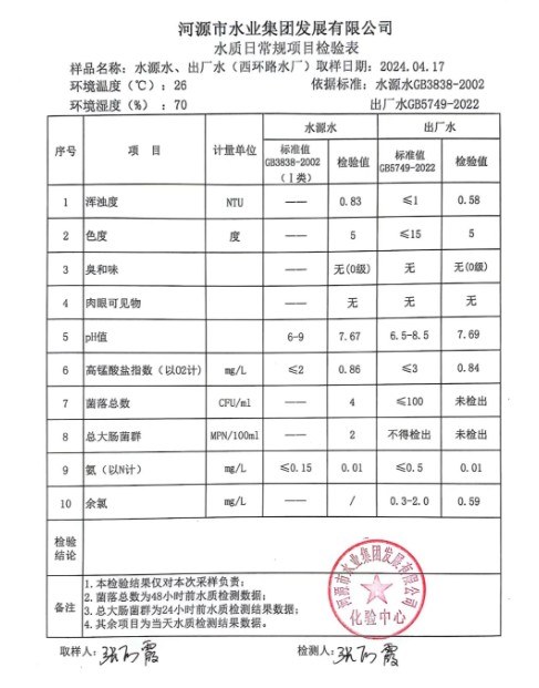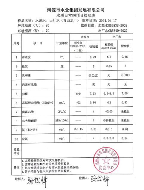 2024年4月17日水質(zhì)檢驗(yàn)報(bào)告