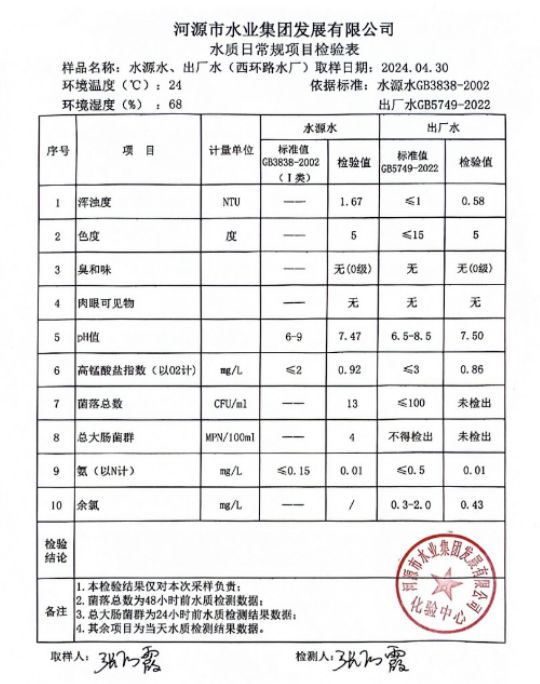 2024年4月30日水質(zhì)檢驗報告 ???