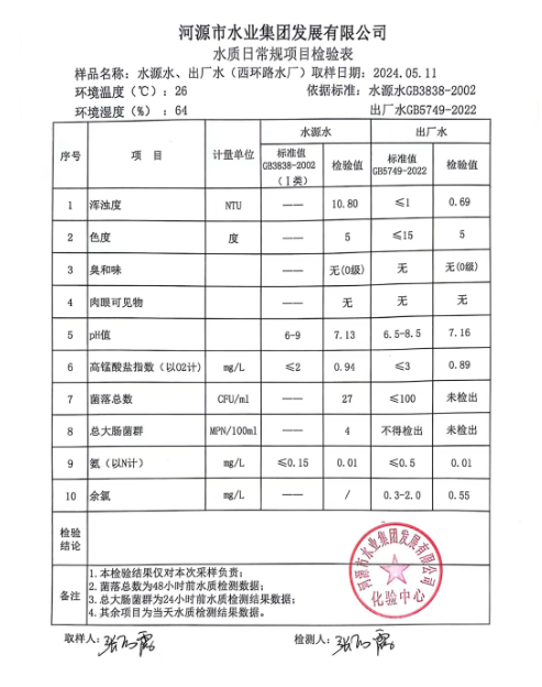 2024年5月11日水質(zhì)檢驗(yàn)報(bào)告 ???