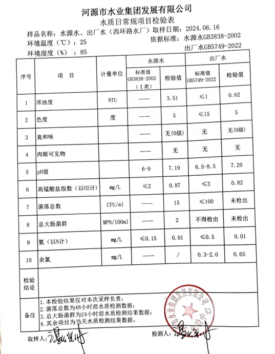 2024年6月16日水質檢驗報告